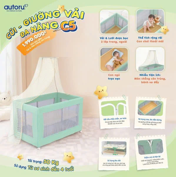 Sản phẩm cũi vải đa năng C5 với nhiều tính năng vừa làm cũi vừa làm giường có thể giúp bé sử dụng được lâu hơn. Sản phẩm cũi vải C5 giúp tiết kiệm cho gia đình nhưng quan trọng nhất là tất cả sản phẩm của Autoru được thiết kế chắc chắn và an toàn cho bé. Ba mẹ có thể xem thêm những sản phẩm ũi cho bé để có thể chọn được một sản phẩm phù hợp và hợp với tài chính nhà mình.
