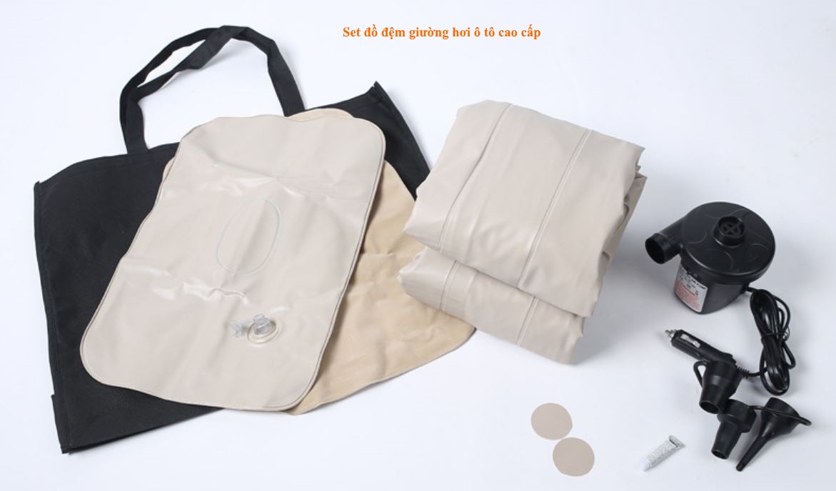- Thiết kế 2 khoang bơm: 1 cho phần đệm, 1 cho phần chân, có thể chỉ bơm riêng phần đệm khi để trên nền đất hoặc thùng xe, tiện dụng mang theo, để ở cốp xe khi không sử dụng, có thể dùng trên ô tô, khi đi dã ngoại Hướng dẫn sử dụng : – Bước 1: Cắm bơm vào tẩu điện. – Bước 2: Đặt giường hơi lên hàng ghế sau,mở nắp van màu trắng ra – Bước 3: Dùng đầu bơm to nhất bơm hơi vào bên trong – Bước 4: Bơm đầy hơi rồi lắp cái van màu đen vào – Bước 5: Dùng đầu bơm cỡ trung bơm vào cho đầy hơi thì dừng lại – Bước 6: Rút đầu bơm và đóng nắp van lại – Bước 7: Trải thẳng mặt giường lên ghế – Bước 8: Lặp lại thao tác như bước 2 Một số hình ảnh của sản phẩm:
