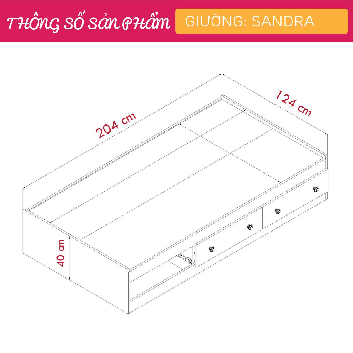 Giường ngủ gỗ Sandra tiếp nối dòng sản phẩm gỗ NHANH – Fast Furniture với phong cách đơn giản sẽ là điểm nhấn nổi bật cho phòng ngủ của bạn. Sản phẩm phù hợp với