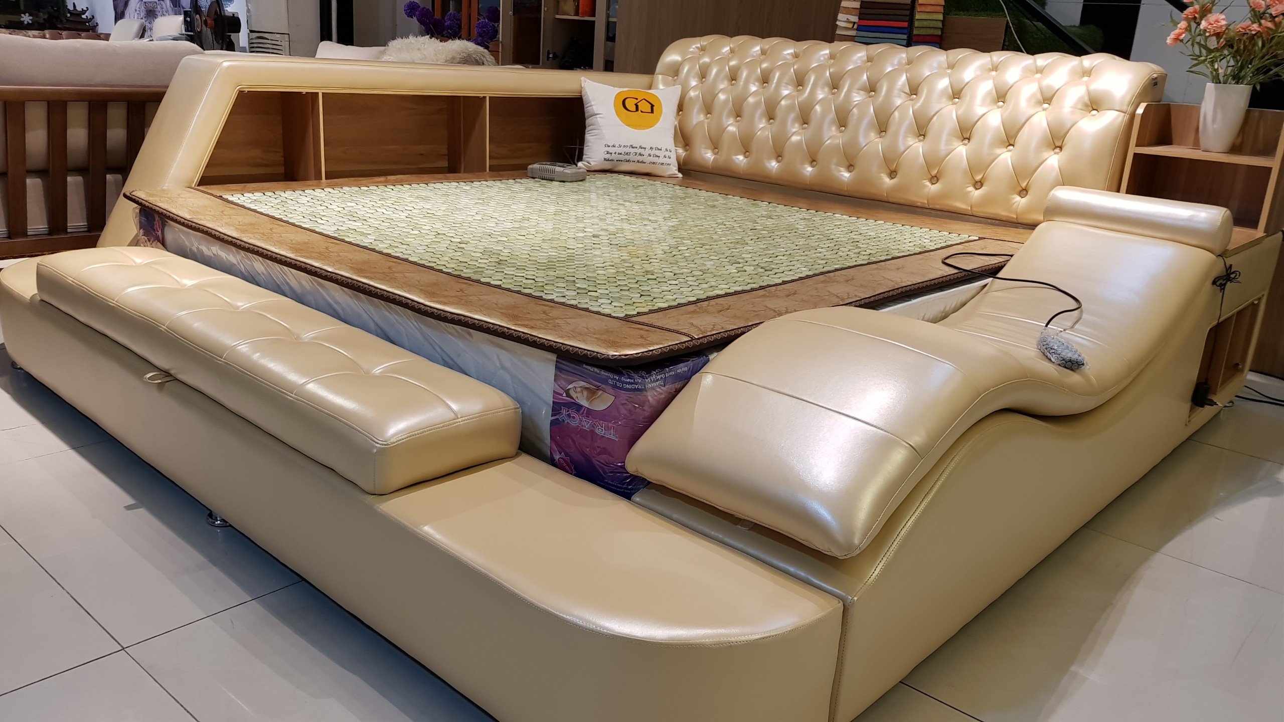 - Giường ngủ cao cấp có thành massage, thành hộc sách và hộc tiện ích, lọt lòng nệm 1m6 x 2m hoặc 1m8 x 2m. phủ bì 2m25 x 2m65
