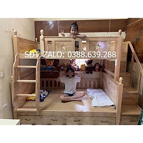 giường gỗ 2 tầng có nhiều ngăn kéo cho bé