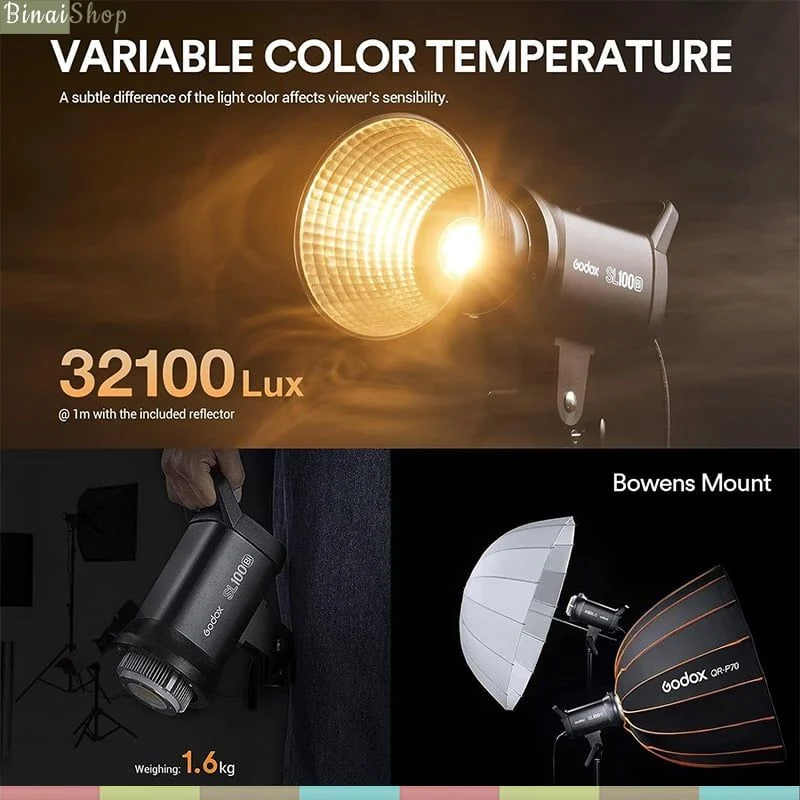 - Đèn trợ sáng Godox SL100D / SL100Bi với thiết kế nhỏ gọn với độ sáng cao phù hợp với những nơi có ánh sáng yếu,tương thích hầu hết với các ngàm Bowen,độ sáng mạnh mẽ lên