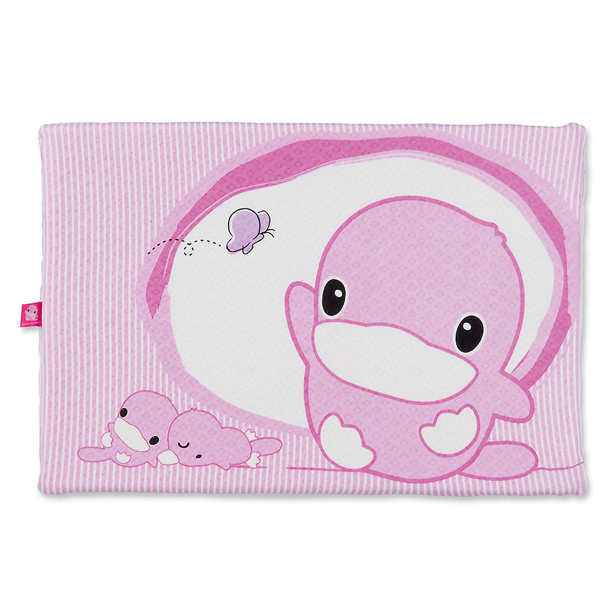 Gối in hình vịt con Kuku luôn mở đôi mắt to tròn và vẫy tay chào đón bé chơi cùng sẽ tạo thiện cảm cho bé khi ngủ. Gối có màu xanh và hồng đẹp mắt, nổi bật tạo cho bé không gian ngủ ấm cúng hơn.