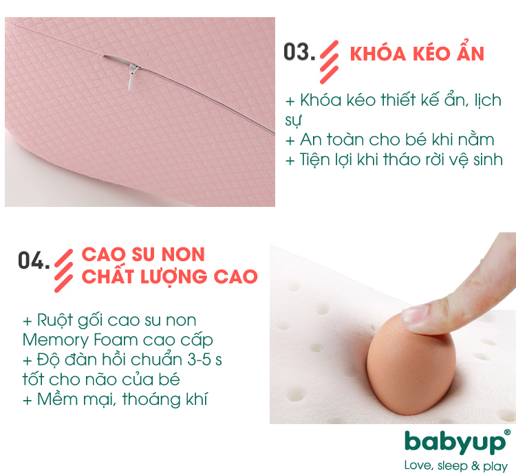 Gối cao su non cho bé Babyup là một sản phẩm chăm sóc sức khỏe chất lượng, được thiết kế đặc biệt để chống bẹp đầu và hỗ trợ phát triển đúng cách cho đầu của bé.