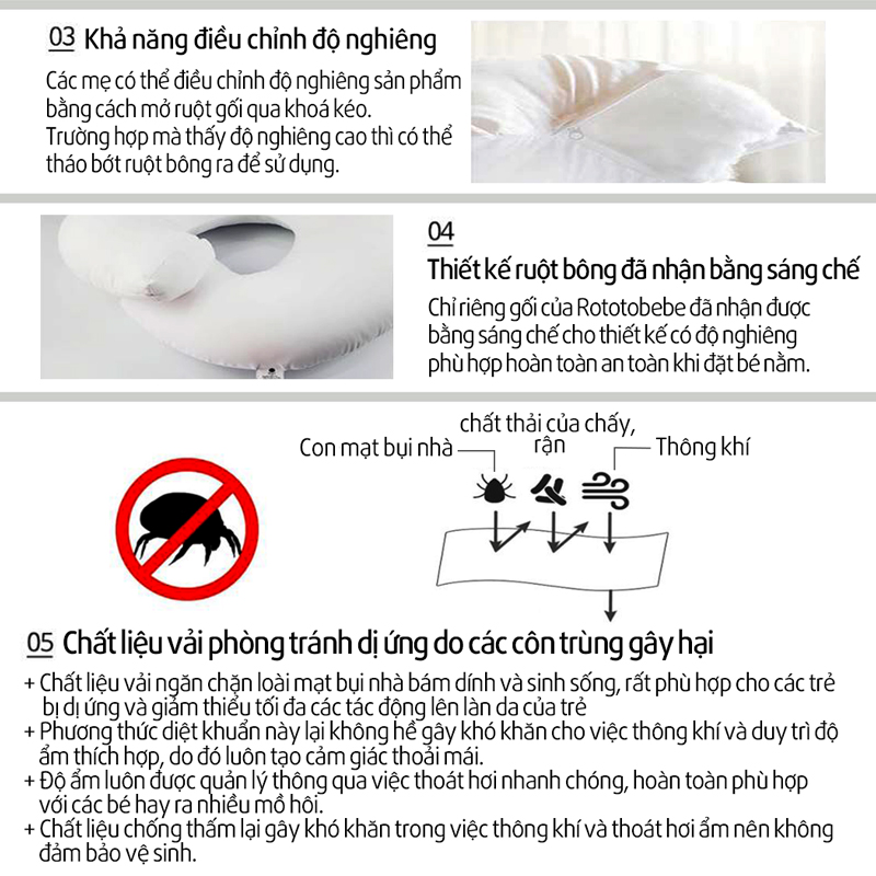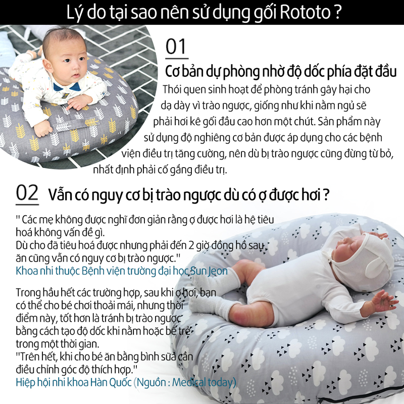 Gối chống trào ngược ROTOTO BEBE hỗ trợ hiệu quả tốt nhất cho bé cho việc chống trào ngược khi uống sữa: