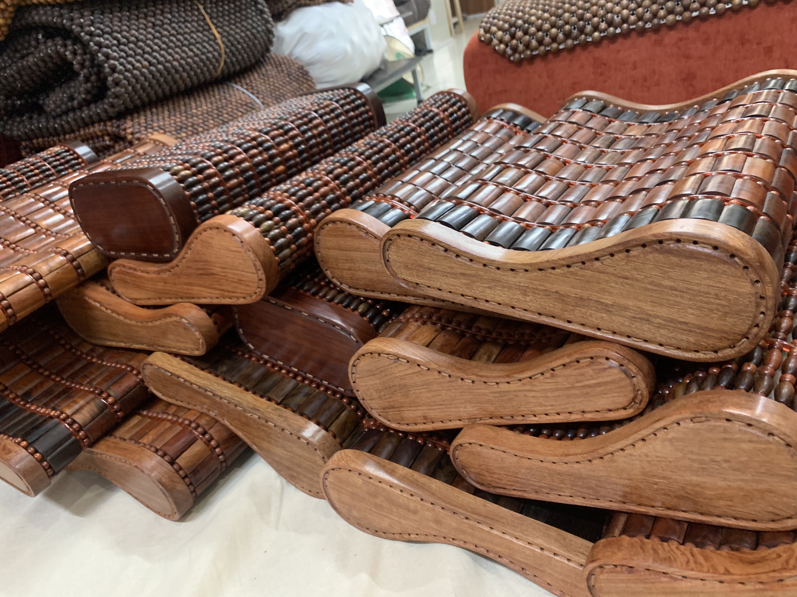 CHIẾU HẠT GỖ HƯƠNG ĐỎ CAO CẤP ( ) : - Chất liệu : 100% gỗ Hương tự nhiên - Kích thước chiếu : 1,2mx1,9m - Kích thước hạt : 1,2cm ( kích thước hạt