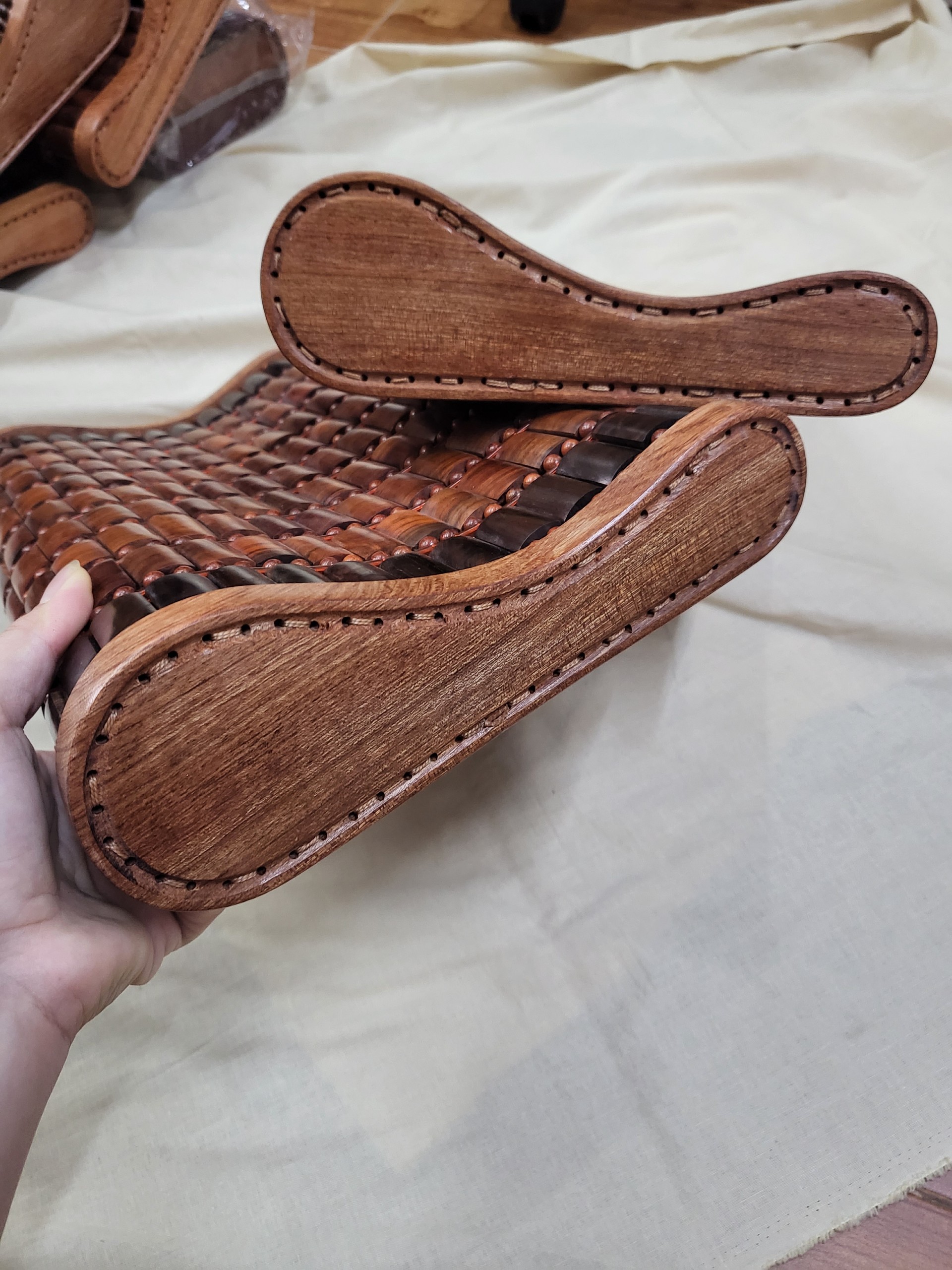 CHIẾU HẠT GỖ HƯƠNG ĐỎ CAO CẤP ( ) : - Chất liệu : 100% gỗ Hương tự nhiên - Kích thước chiếu : 2,2mx2m - Kích thước hạt : 1,2cm ( kích thước hạt