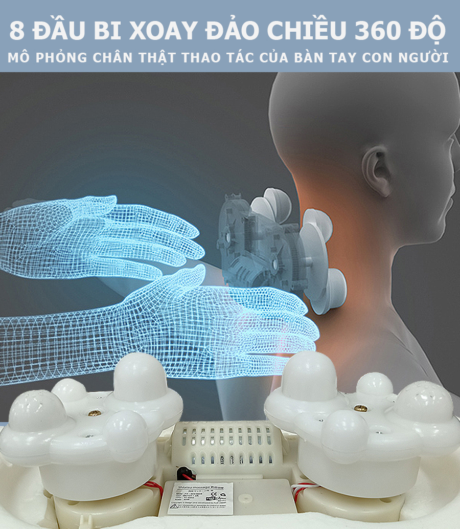 Trang bị đến tận 8 con lăn vận hành linh hoạt, xoay đảo chiều 360 độ tạo ra lực ấn và nhào nặn tán đều lên bề mặt tiếp xúc. Động tác massage của con lăn được mô phỏng như bàn tay con người, bạn sẽ cảm nhận rõ sự chân thực như đang trải nghiệm dịch vụ spa tại nhà.