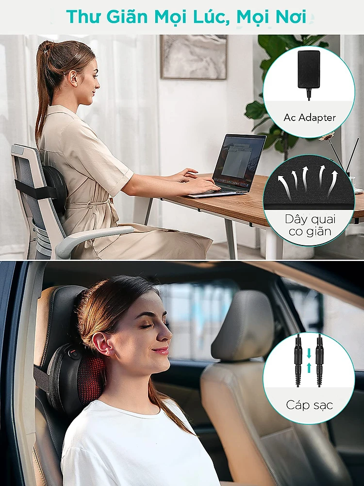 GỐI MASSAGE 8 BI HỒNG NGOẠI TRỊ LIỆU ĐAU MỎI VAI GÁY Còn gì tuyệt vời hơn khi sau mỗi ngày làm việc căng thẳng,mệt mỏi, đau lưng vai gáy được tựa mình trên chiếc