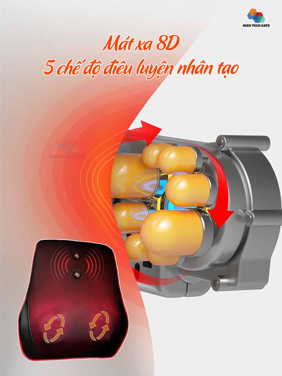 Gối Massage hồng ngoại đa năng - Sử dụng được cho toàn bộ cơ thể – cổ, vai, gáy, lưng trên, lưng dưới, cẳng chân và bàn chân - Thiết kế khoa học tăng thêm