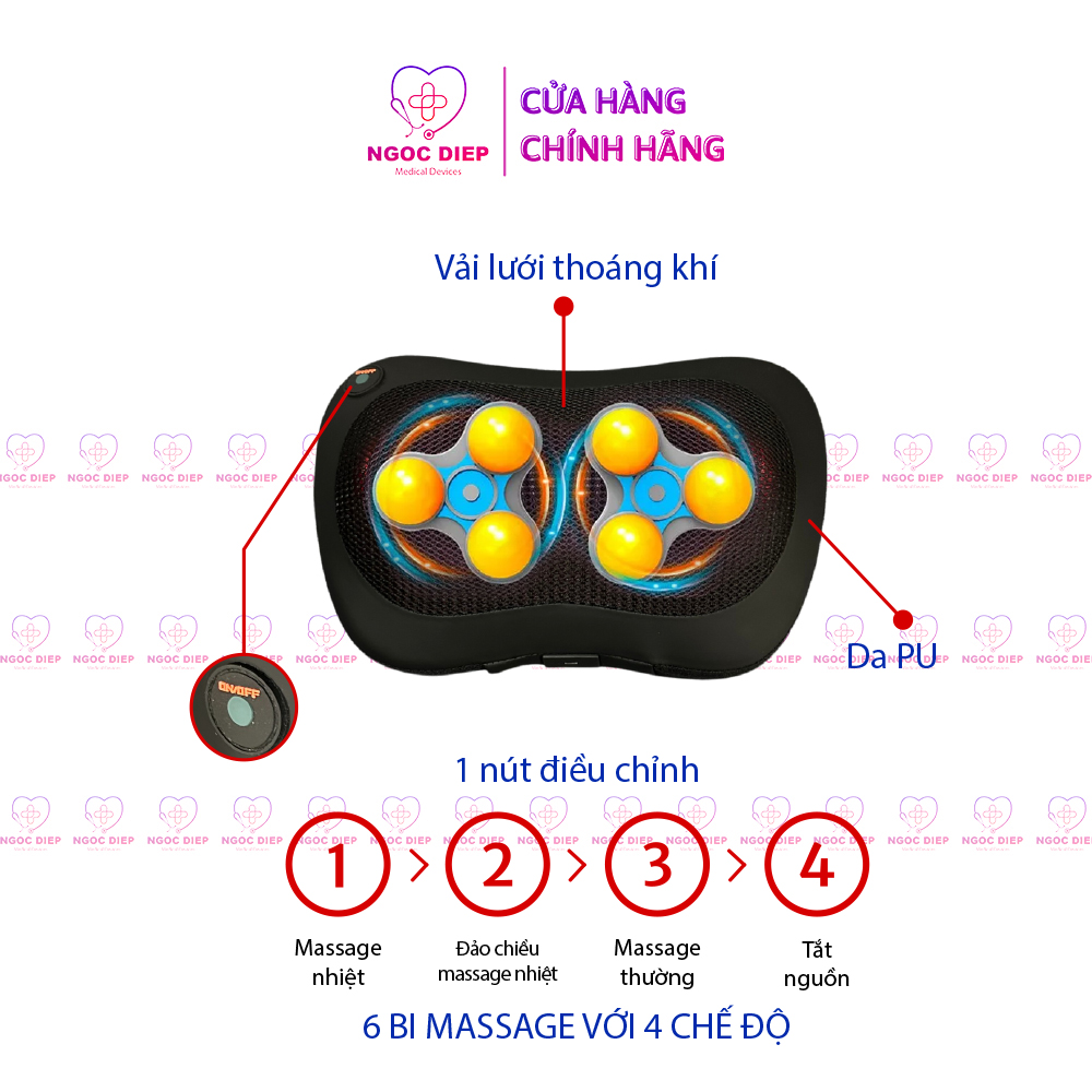 Gối massage hồng ngoại cổ vai gáy, máy massage 20 bi cao cấp hỗ trợ mát xa vùng cổ,vai gáy toàn thân