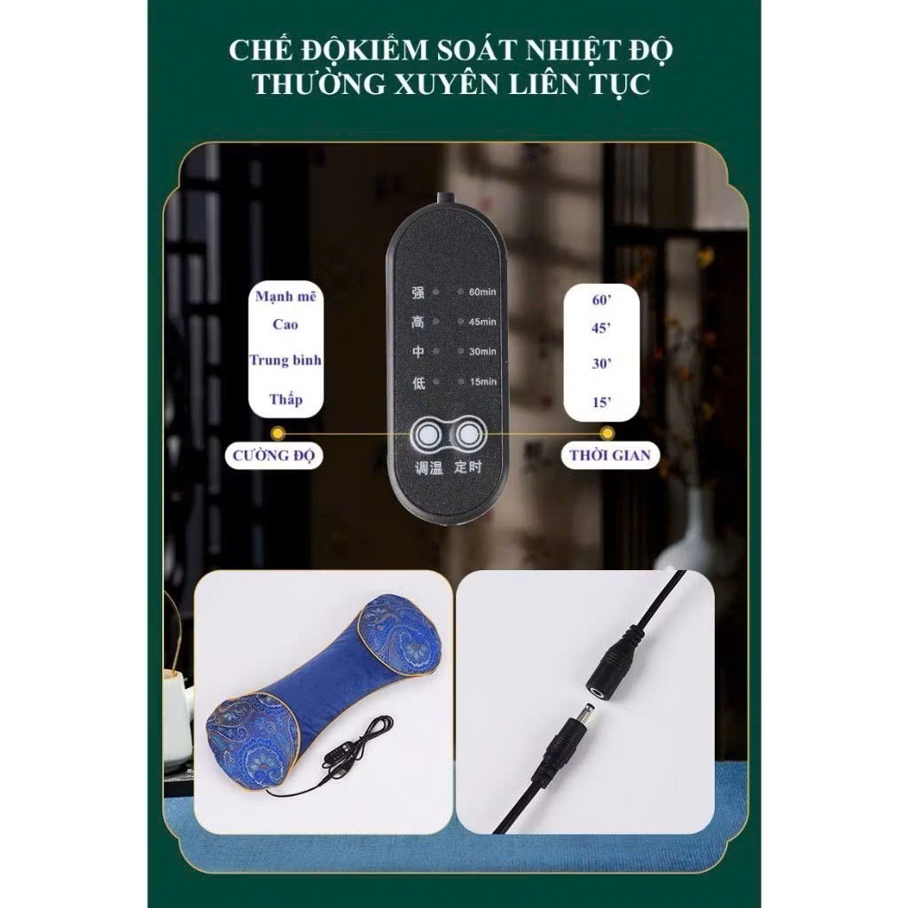 Gối ngải cứu sưởi ấm bằng điện bảo vệ cột sống cổ vai gáy
