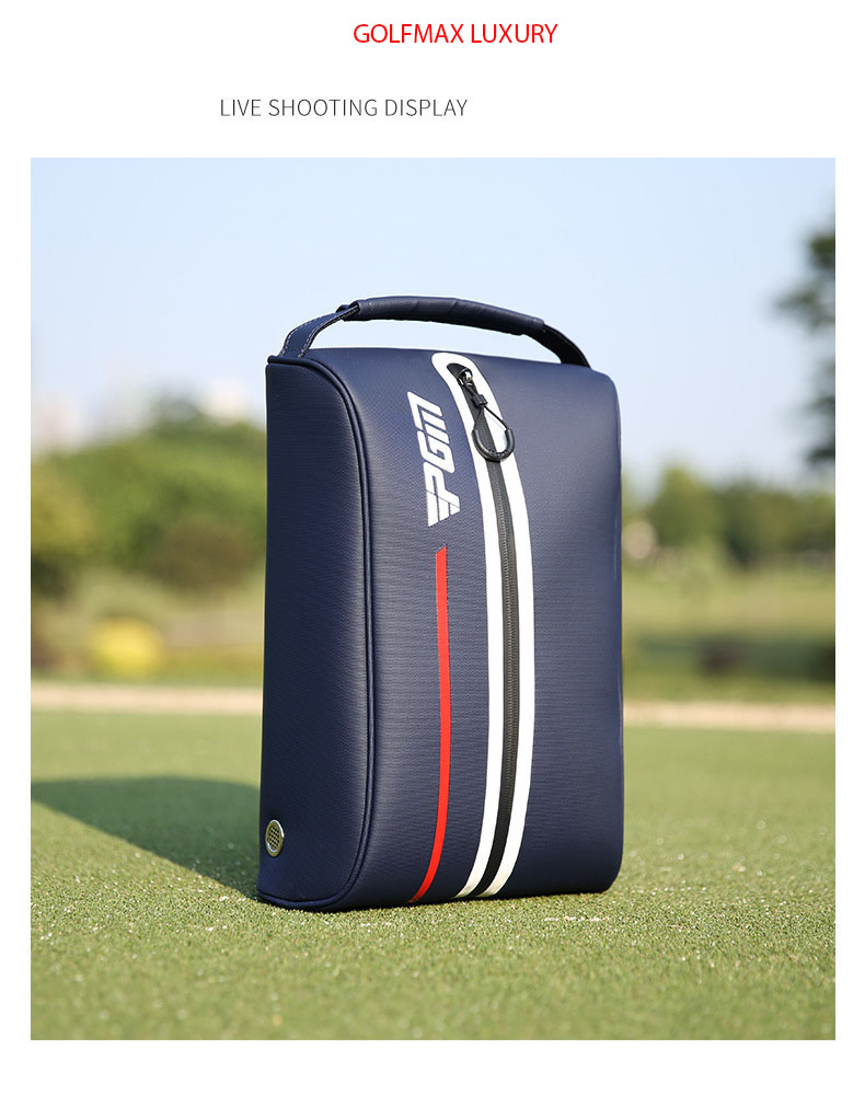 Túi đựng giày golf PGM-XB006 được làm bằng chất liệu vải Nylon cao cấp chống thấm nước.Thiết kế lưới thoáng khí bên hông túi có khả năng chống mùi khó chịu và thoát khí tốt hơn. 1. Thông tin sản phẩm: - Thương hiệu: PGM - Túi đựng giày golf nam nữ : XB006 - Màu sắc: Xanh, Đỏ, Trắng - Giới tính: Nữ - Kích thước: 32.5cm x 22cm x 13cm - Trọng lượng khoảng:0.2KG 2.Thương hiệu PGM – PGM là hãng sản xuất chuyên về dụng cụ Golf cung cấp khắp các nước Bắc Mỹ, Trung Á và Đông Nam Á –PGM là thương hiệu lớn tại Trung Quốc. với tiêu chuẩn sản xuất chất lượng châu âu. Và cũng