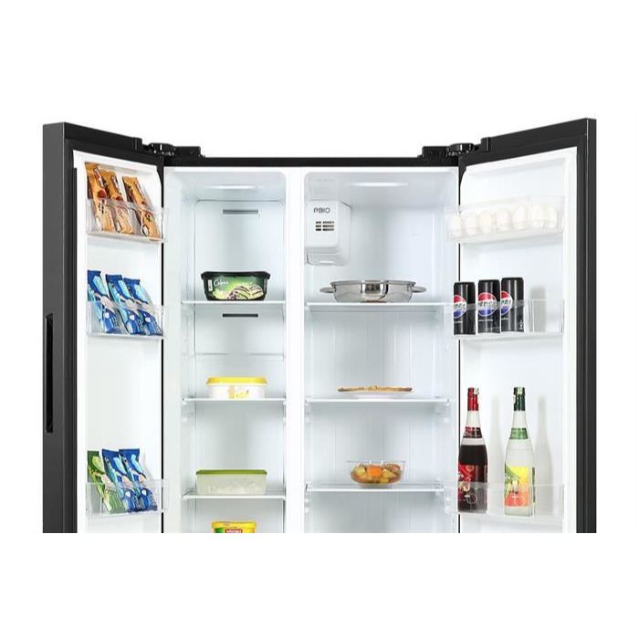 THÔNG TIN SẢN PHẨM - Kiểu tủ:Tủ lớn - Side by Side - 2 cánh - Dung tích sử dụng:519 lít - 4 - 5 người - Dung tích tổng:Hãng không công bố - Dung tích ngăn đá:185 lít - Dung tích ngăn lạnh:334 lít - Chất liệu cửa tủ lạnh:Mặt gương mờ - Chất liệu khay ngăn lạnh:Kính cường lực - Chất liệu ống dẫn gas, dàn lạnh:Ống dẫn gas bằng Đồng - Lá tản nhiệt bằng Nhôm - Năm ra mắt:2023 - Sản xuất tại:Trung Quốc Mức tiêu thụ điện năng - Công suất tiêu thụ công bố theo TCVN:520 kWh/năm - Công nghệ tiết kiệm điện:Inverter Công nghệ bảo quản và làm lạnh - Công nghệ làm lạnh:Luồng khí lạnh đa chiều Multi Air FlowCông nghệ 2 dàn lạnh độc lậpCông nghệ làm lạnh No Frost - Công nghệ bảo quản thực phẩm:Ngăn Moisture Fresh Crisper cân bằng độ ẩm - Công nghệ kháng khuẩn, khử mùi:Bộ lọc Anti Bacteria·Purify diệt khuẩn, khử mùi Tiện ích -