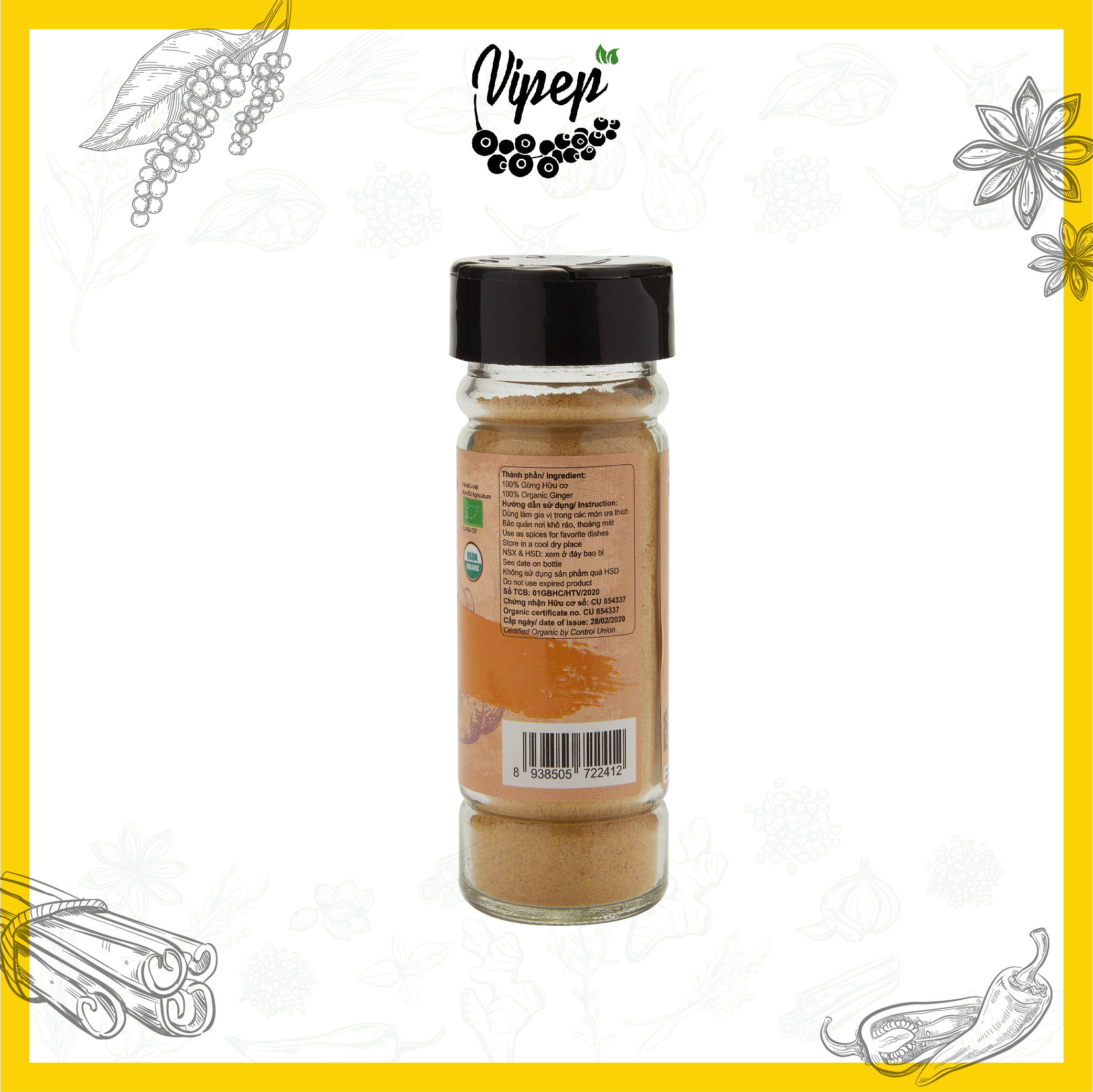 ✨Gừng Bột Farmers' Organic Vipep Hũ Thủy Tinh 40g