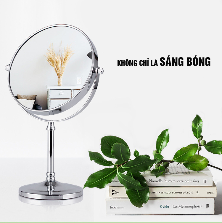 - Mẫu 2: Chỉ có mặt gương (Không chân). Sản phẩm được đổi trả nhưng thời gian của quý khách mới là quý báu Mô tả Gương trang điểm để bàn Roman, Crom, phóng đại zoom x3, 2 mặt xoay siêu nét Minh House Rất là khó chịu khi trang điểm, tỉa lông, gắn lông mi giả, nhổ râu, nặn mụn… mà cứ phải dí sát mặt vào gương, vừa phải nhướn người vừa phải điều tiết mắt do khoảng cách quá gần cực bất tiện Các gương thông thường lại quá bé Giải pháp: Sắm Gương trang điểm để bàn Roman phóng đại 3 lần, xoay 360 độ, 2 mặt siêu nét Mẫu 1: Gương Roman có chân, 20cm Ưu điểm vượt trội so với gương thông thường: