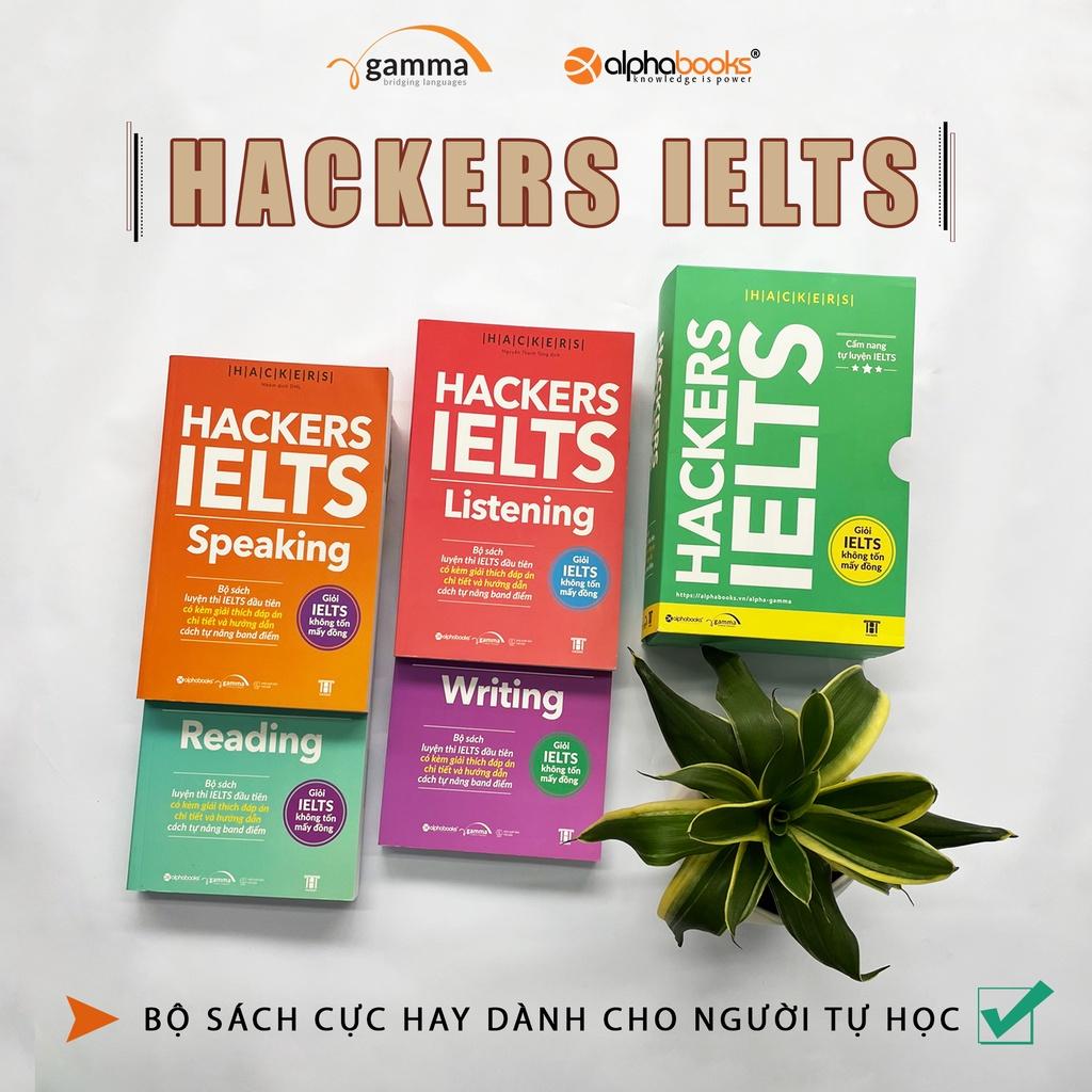Bộ sách Hackers IELTS được viện nghiên cứu ngôn ngữ HACKERS biên soạn gồm 4 cuốn tương đương với 4 kỹ năng: Listening - Speaking - Reading - Writing. Bộ sách luyện thi IELTS đầu