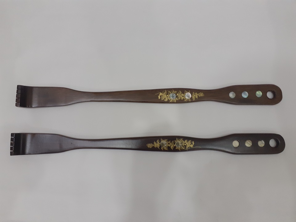 Hai Cây gãi lưng gỗ Dài 48,5 cm- Khảm trai đẹp Nguyên liệu :gỗ tự nhiên