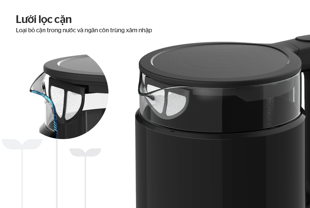 - Miệng rót tích hợp lưới lọc cặn an toàn Với lưới lọc cặn tích hợp thêm ở miệng rót, khi bạn rót nước từ trong ấm siêu tốc thủy tinh 1.7L SUNHOUSE MAMA SHD1330 ra cốc, các loại căn sẽ được ngăn lạl, giúp nước sạch hơn. Đồng thời các loại côn trùng như muỗi, kiến, bọ… cũng sẽ không thể lọt vào ấm.
