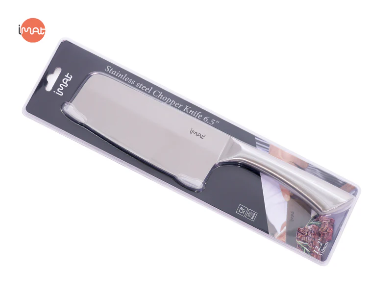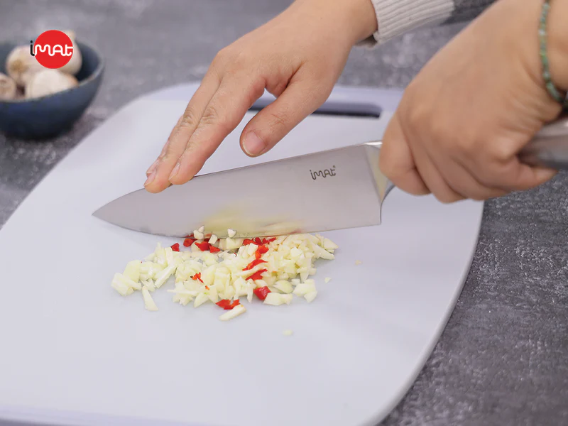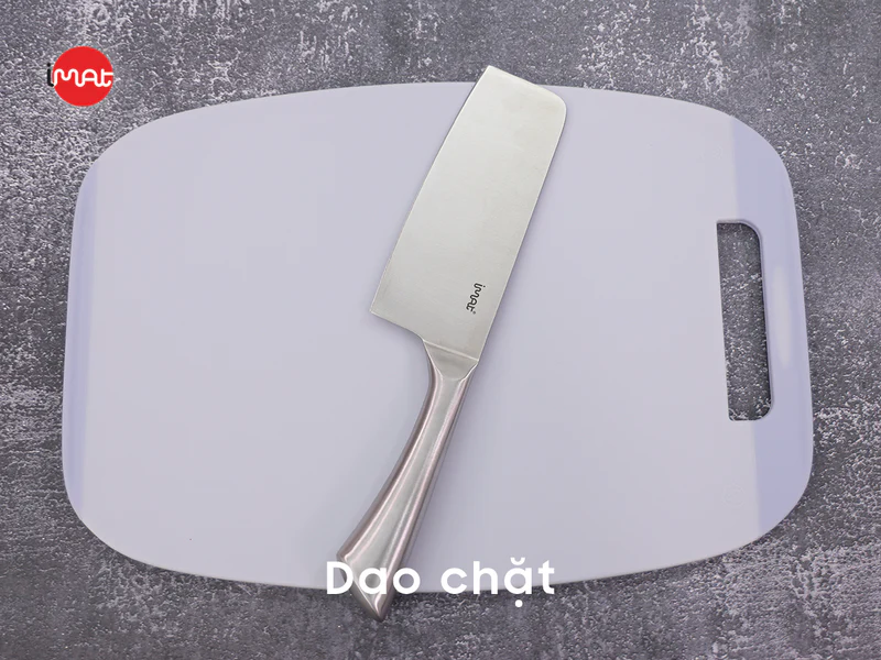 Bộ 3 dao đa dụng : 01 Dao gọt 5" đa năng iMat: dài 24 cm (cán) I 01 Dao Chef đa năng iMat: dài 34.4cm (cán) I 01 Dao Băm chặt, thái bản dày iMat: dài 32.4cm (cán)