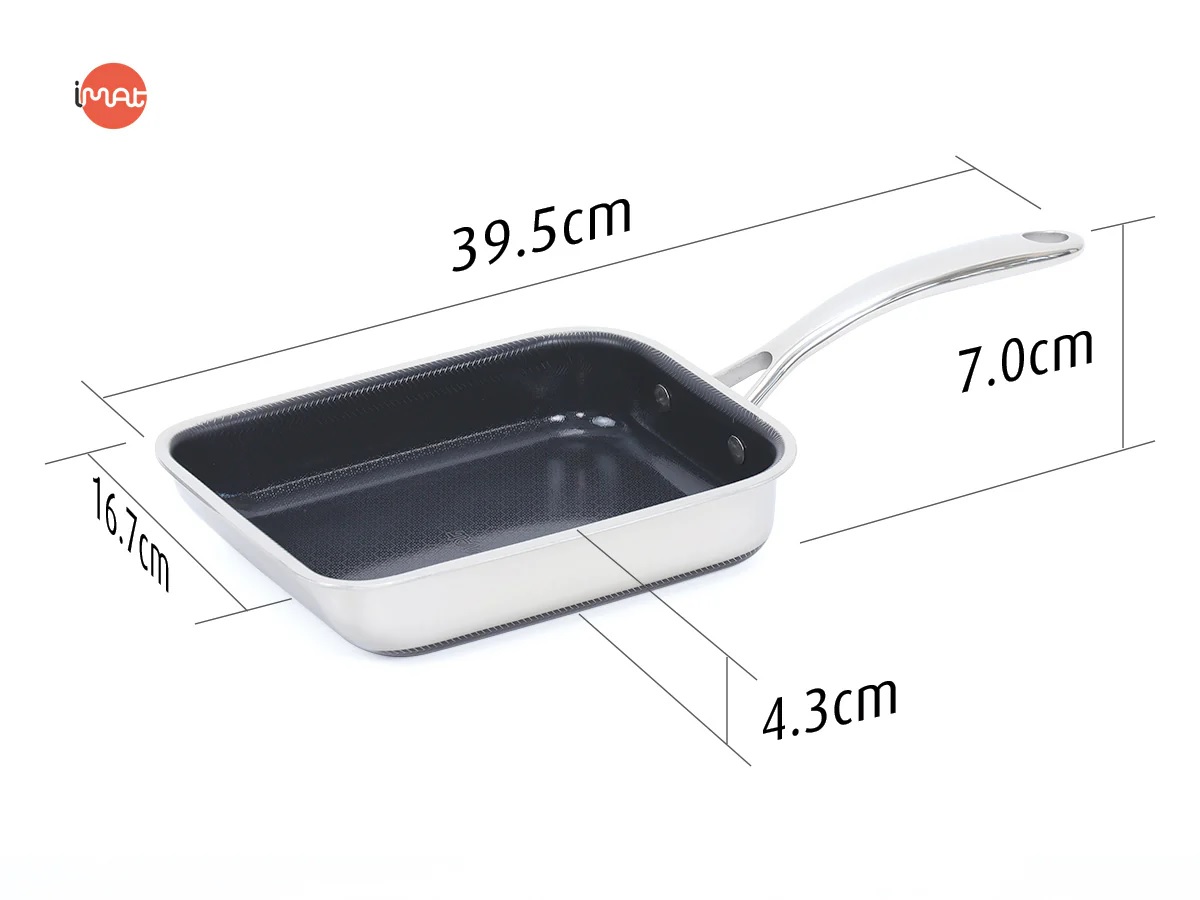 Chảo iMat Hybrid 15cm tay cầm dài, để chế biến món trứng cuộn Nhật Bản (Tamagoyaki) bằng cách chiên từng lớp trứng và cuộn thành khối vuông. Thiết kế chữ nhật nhỏ gọn và cấu trúc ba lớp cao cấp giúp chảo dẫn nhiệt tốt, tạo ra món trứng cuộn thơm ngon hơn. Ngoài ra, chảo còn phù hợp để chiên rán lượng thực phẩm nhỏ như thịt, cá, rau củ. lớp chống dính ceramic kết hợp công nghệ Blackcube giúp tăng cường khả năng chống dính và bền bỉ, không chứa PFOA và PTFE, đảm bảo an toàn sức khỏe