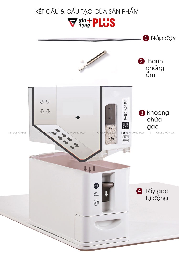 Mua tại Tiktok- Thùng đựng gạo thông minh xuất Nhật Bản cao cấp có dung tích ,12KG, được làm bằng chất liệu nhựa ABS cao cấp - an toàn và sang trọng.