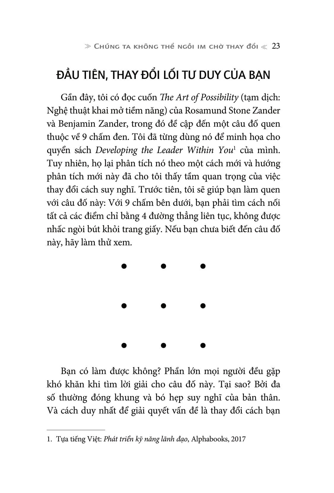 Và quyển sách này – Change Your World: How Anyone, Anywhere Can Make a Difference sẽ giúp bạn mở mang tầm mắt, để bạn có thể nhìn môi trường xung quanh với một góc nhìn thật khác biệt – đó là tiền đề cho quá trình thay đổi cách sống và thậm chí là biến đổi thế giới xung quanh bạn.