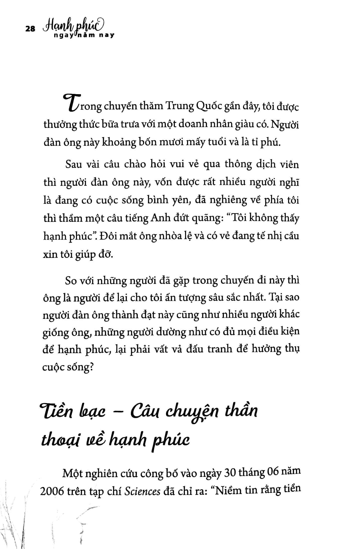 “Nếu tôi có…, tôi sẽ hạnh phúc” “Nếu tôi làm…, tôi sẽ hạnh phúc” Hạnh phúc không phải là kết quả của việc có được hay đạt được điều gì. Thay vào đó, hạnh phúc là con đường ngắn nhất, trực tiếp nhất dẫn đến thành tựu và thành quả cá nhân. Trong best-seller Hạnh phúc ngay năm nay, Will Bowen sẽ hướng dẫn bạn cách hợp nhất các ý tưởng, lời nói và hành động nhằm cải thiện đáng kể mọi lĩnh vực trong cuộc sống, dẫn đến một sức khỏe thể chất tốt hơn, thành công mỹ mãn trong công việc và có mối quan hệ tốt đẹp hơn với mọi người. Quan điểm độc đáo của tác giả Will về hạnh phúc và những chỉ dẫn thực tiễn sẽ giúp bạn loại bỏ các chướng ngại tinh thần và hiểu được cách sống khai thông dòng chảy hạnh phúc.