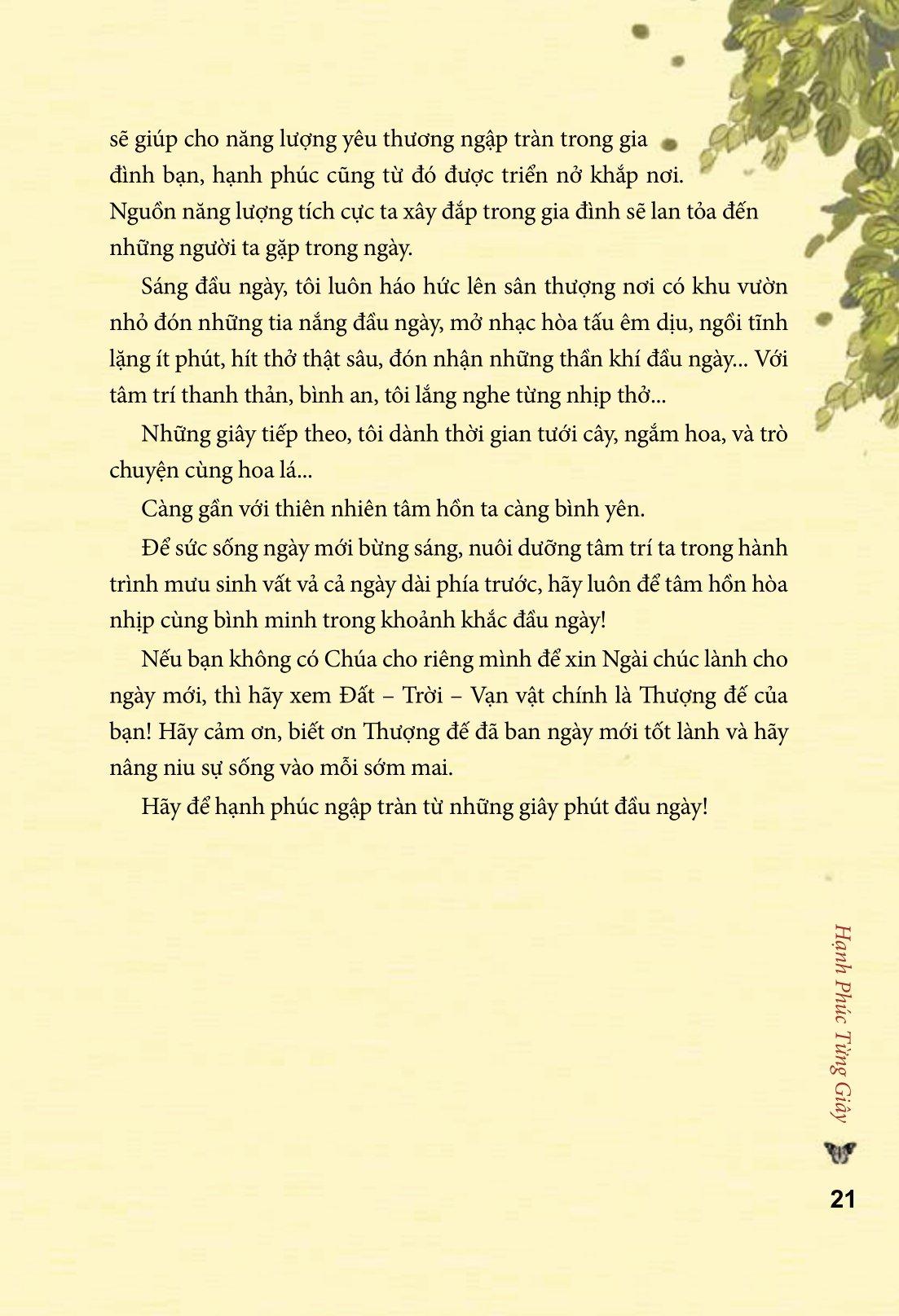 “Đời là bể khổ”, nhưng ta có quyền chọn để hạnh phúc mở lối. Chính vì lý do đó mà quyển sách nhỏ bé Hạnh phúc từng giây đã ra đời.