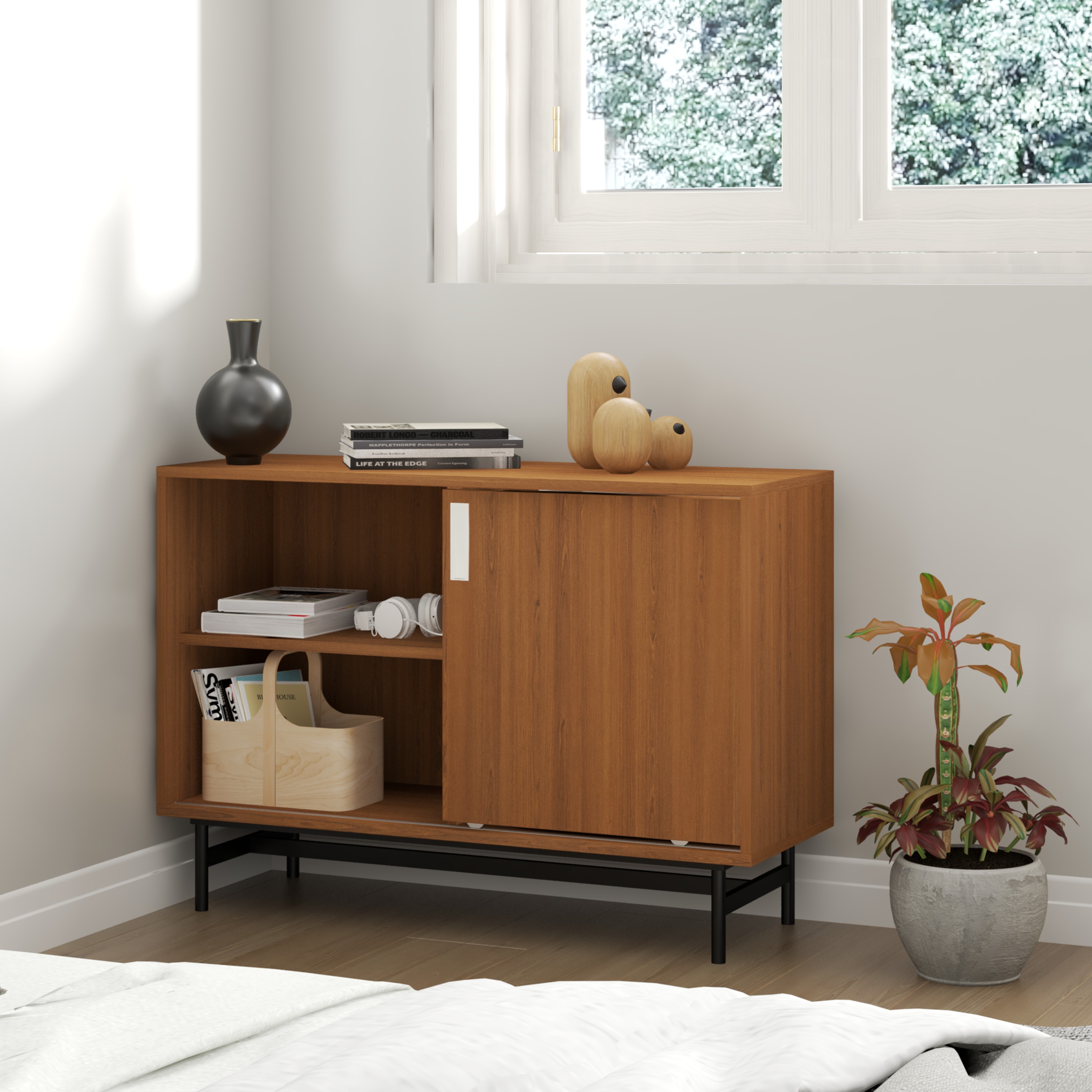 ✨[Happy Home Furniture] LUCA, Tủ lưu trữ cánh lùa 3 ngăn kéo - Chân sắt, 100cm x 36cm x 70cm ( DxRxC), TCL_019
