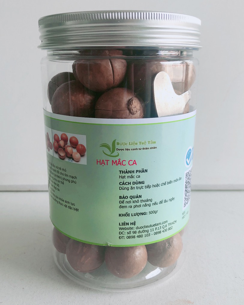 - Giá trị ẩm thực Vỏ mắc-ca có nhiều tannin và protein, dùng làm thuộc da và chế biến thức ăn chăn nuôi. Mắc-ca có vị béo, ngọt, giòn tan, trung hòa gia vị làm cho món ăn thêm đậm đà, thường được dùng để ăn sống, luộc hoặc xào nấu. Nhân mắc-ca sau khi chiên rang ăn rất ngậy, bùi, có hương vị của bơ, là một loại thực phẩm cao cấp, ngon, bổ, giàu chất béo, giàu nhiệt năng, dùng để chế biến nhân bánh, chocolate,nước uống, dầu salat… góp phần tạo nên hương sắc mới lạ và làm tăng giá trị cho món ăn Hạt mắc ca THÔNG TIN VỀ SẢN PHẨM Tên sản phẩm: hạt mắc ca Nguồn gốc: tây nguyên Đóng gói 500g cao cấp Ngày sản xuất: Ghi trên bao bì Hạn sử dụng: 1 năm