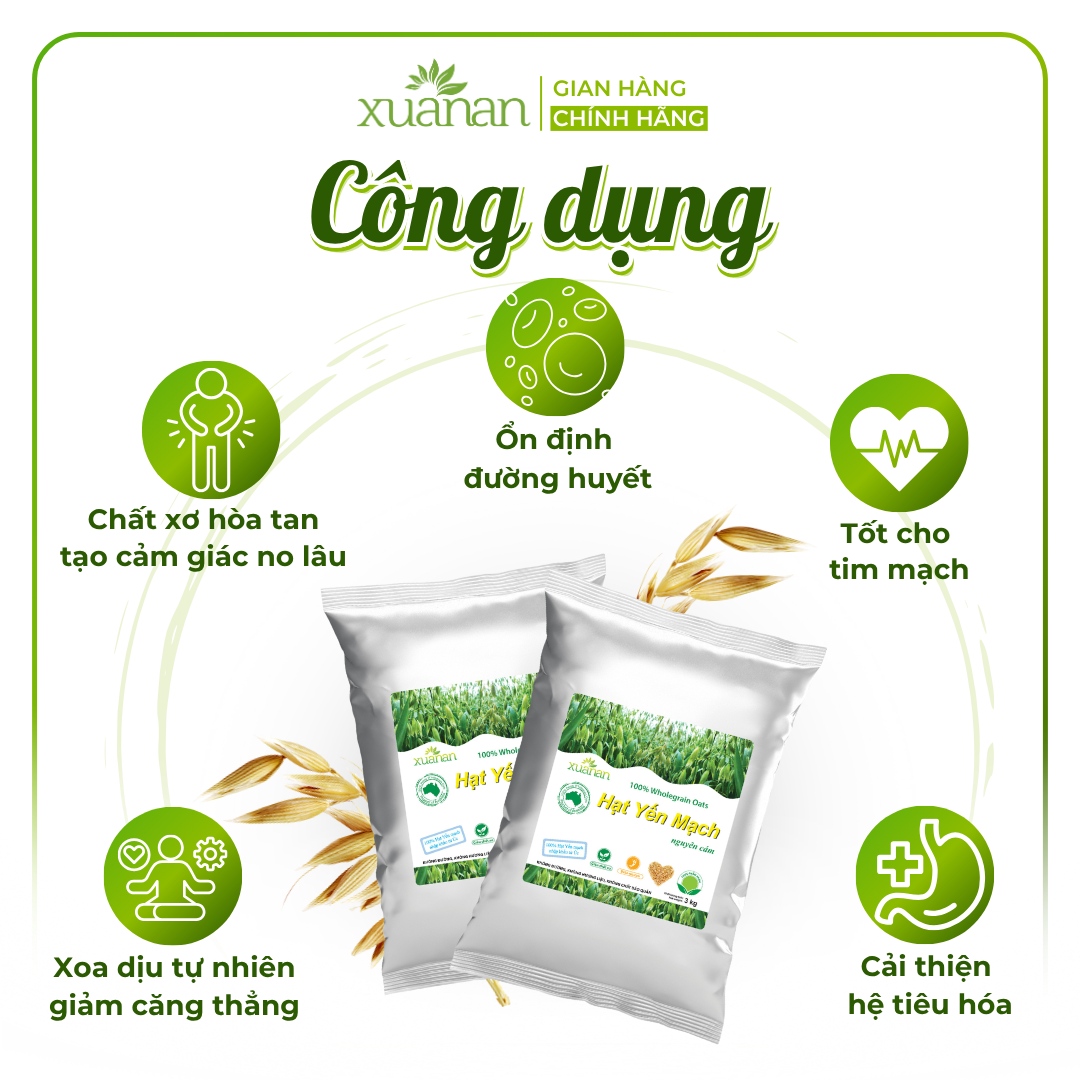 CÔNG DỤNG CỦA YẾN MẠCH: Giúp giảm cân Tốt cho tim mạch. Sử dụng yến mạch làm đẹp làn da. Giúp bảo vệ tim, phòng chống ung thư . Ăn yến mạch giúp nhuận tràng,