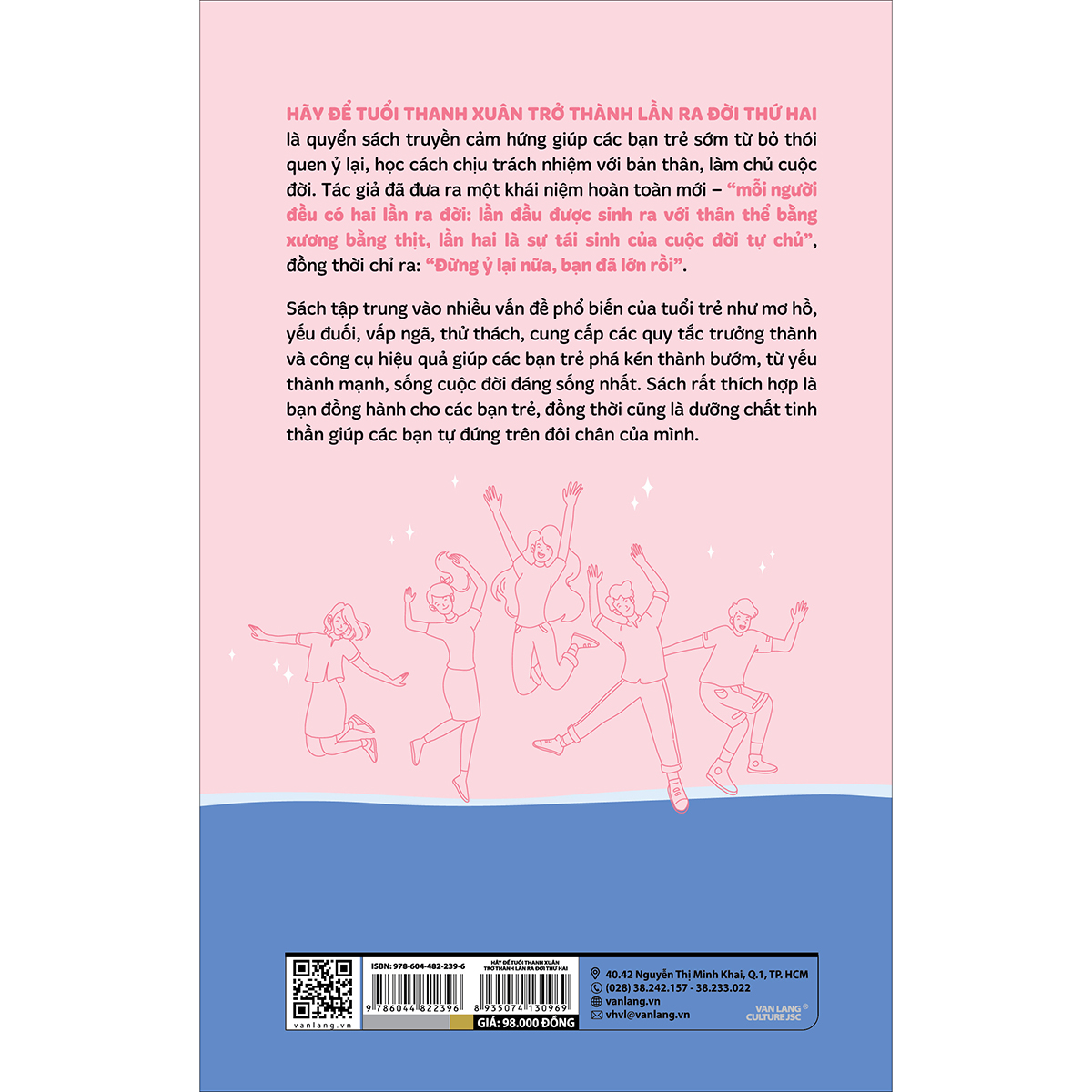 Hãy để tuổi thanh xuân trở thành lần ra đời thứ hai là quyển sách truyền cảm hứng giúp các bạn trẻ sớm từ bỏ thói quen ỷ lại, học cách chịu trách nhiệm với bản thân, làm chủ cuộc đời. Tác giả đã đưa ra một khái niệm hoàn toàn mới – “mỗi người đều có hai lần ra đời: lần đầu được sinh ra với thân thể bằng xương bằng thịt, lần hai là sự tái sinh của cuộc đời tự chủ”, đồng thời chỉ ra: “Đừng ỷ lại nữa, bạn đã lớn rồi”.