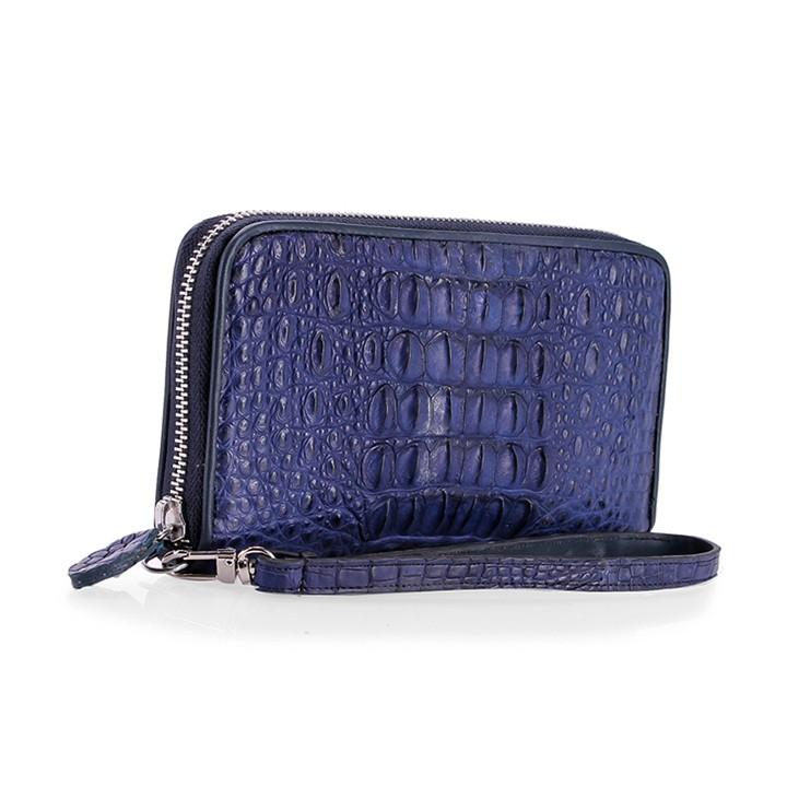 - Tên sản phẩm: HP3717 - Ví nữ Huy Hoàng da cá sấu 1 khóa nguyên con màu xanh đậm