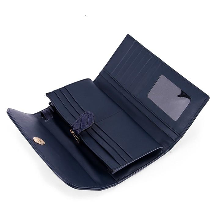 Ví/Bóp nữ da bò Huy Hoàng cao cấp 3 gấp màu xanh đậm 3139