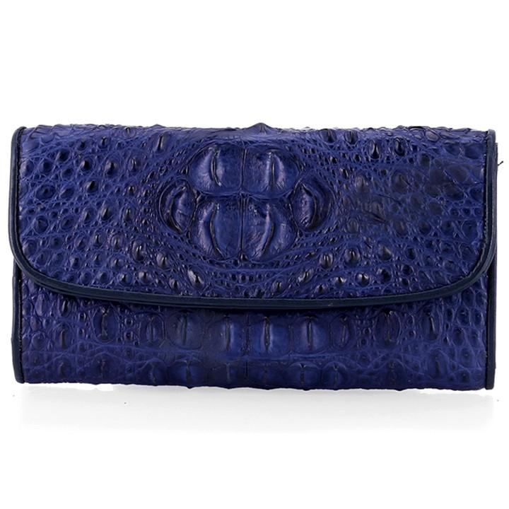 ✨HC3720 - Ví nữ Huy Hoàng da cá sấu 3 gấp nguyên con màu xanh đậm