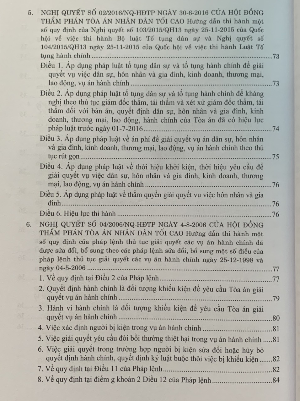 Phần I. Hệ thống các Nghị quyết của Hội đồng Thẩm phán Tòa án nhân dân tối cao về hành chính