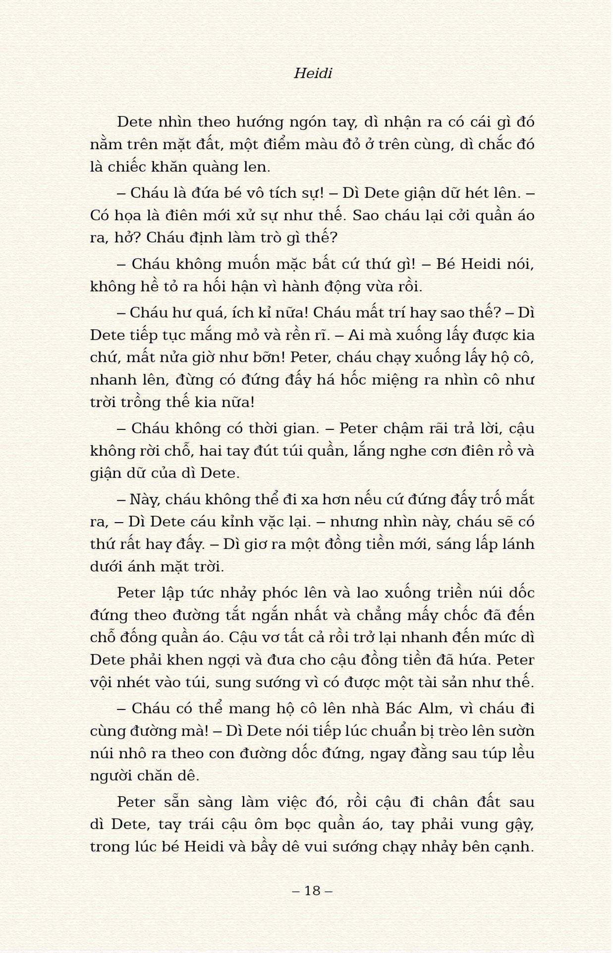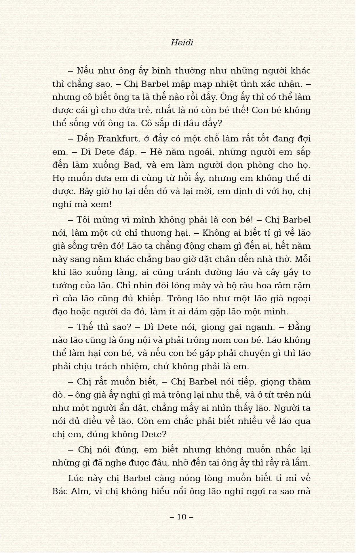 Cuốn sách kinh điển của Johanna Spyri đã được Đông A xuất bản với bản dịch được yêu thích của dịch giả Thanh Vân, minh họa của Elena Selivanova. Sách in màu, bìa cứng, có bìa áo.