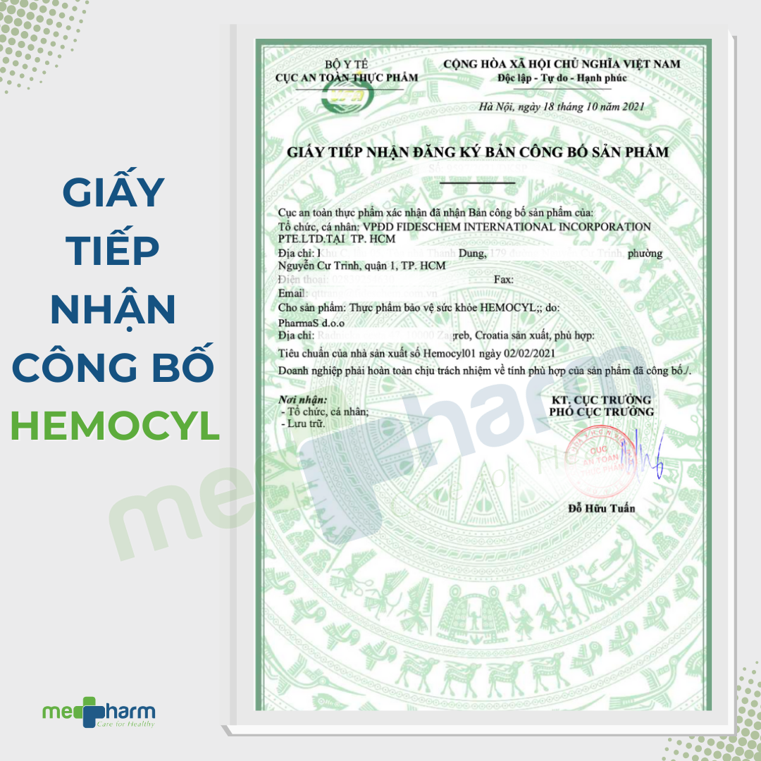 Mua tại TiktokMỤC ĐÍCH SỬ DỤNG: Hemocyl chứa 3 hoạt chất chính từ thiên nhiên Berberis vulgaris, Hamamelis virginians và Cichorium intybus được bào chế theo quy trình đặc biệt để đảm bảo dược tính. Với tác dụng hiệp lực của các hoạt chất, Hemocyl có tính kháng viêm và khả năng cải thiện tuần hoàn tĩnh mạch hậu môn thông qua hệ tuần hoàn cửa ở gan, từ đó hỗ trợ giảm áp lực lên đám rối tĩnh mạch.