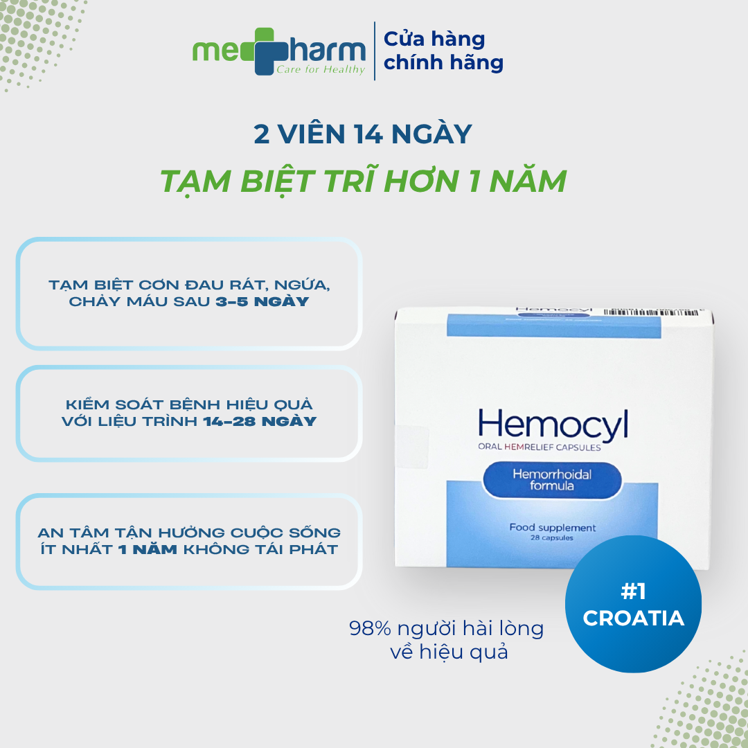 - Hiệu quả vượt trội: Hemocyl được xem là có tác dụng trên bênh trĩ tốt nhất thế giới hiện Hemocyl giúp: