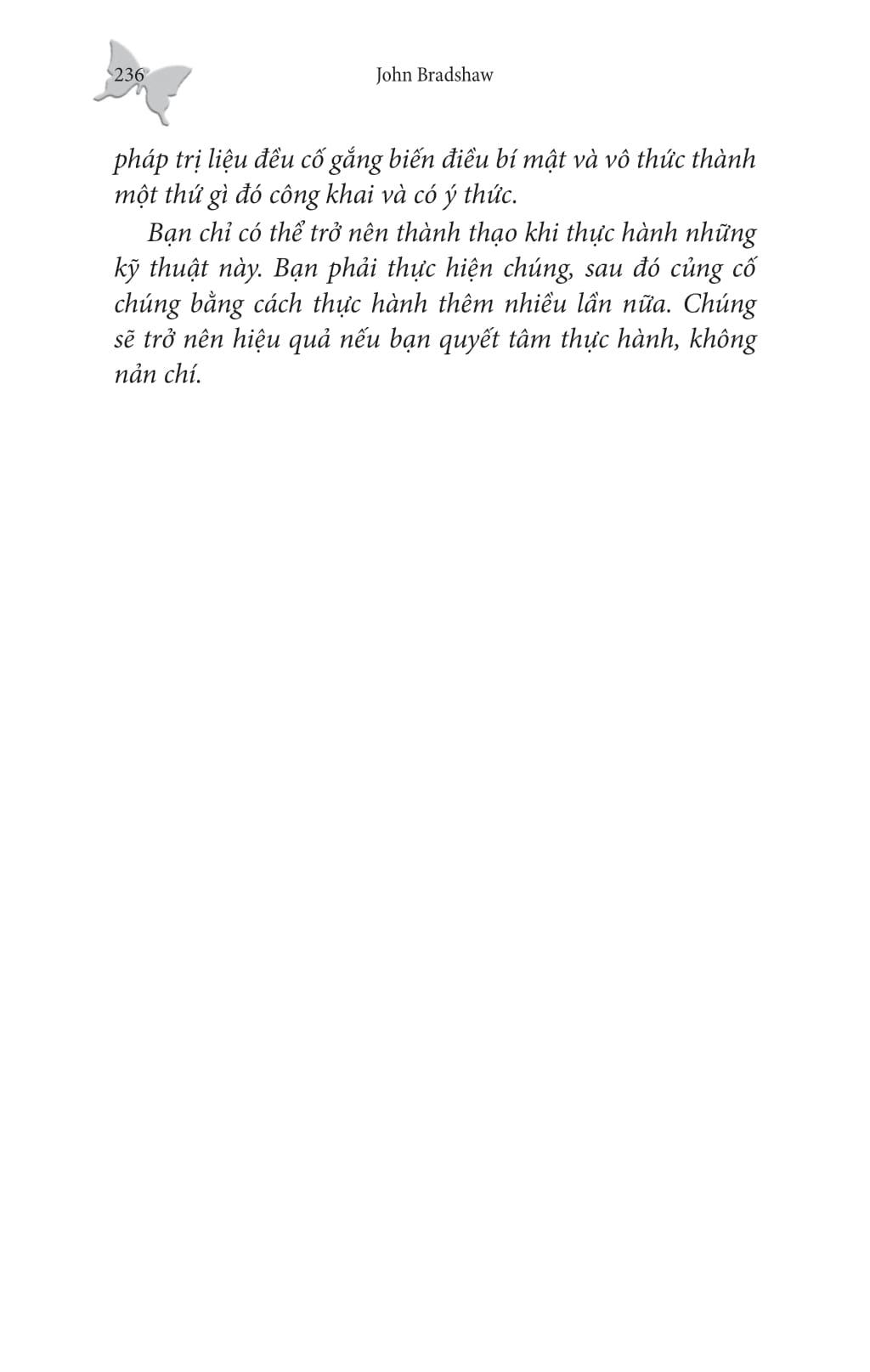 Về tác giả: John Bradsha – tác giả có sách bán chạy theo bình chọn của The New York Times - là một nhà triết học, tâm lý học, thần học, rất nổi tiếng về những tác phẩm dạng chữa lành. Sách của ông sâu sắc nhưng cũng rất thực tiễn, dễ áp dụng, được cả các nhà nghiên cứu chuyên sâu lẫn bạn đọc phổ thông tìm kiếm.