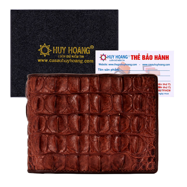 ✨HJ2210-11-12-43 - Bóp nam Huy Hoàng da cá sấu gai lưng màu đen, nâu đỏ, vàng bò, nâu đất
