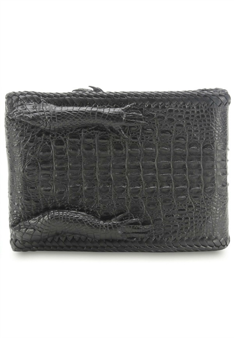 - Chất liệu: Da cá sấu thật 100%. - Kích thước: 12,5 x 10 cm (Gấp lại); 20 x 10 cm (Mở ra).
