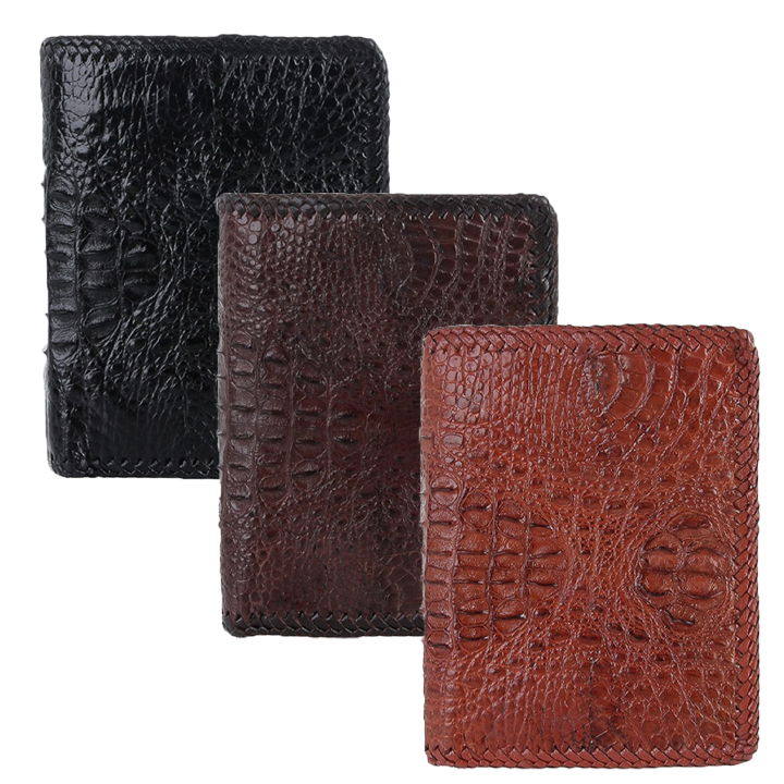 ✨HJ2761-63-65 - Ví nam da cá sấu nguyên con kiểu đứng đen, nâu đất, nâu đỏ