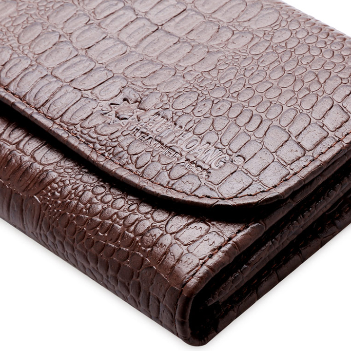 Ví/Bóp nữ vân cá sấu Huy Hoàng bấm nút màu nâu 3110