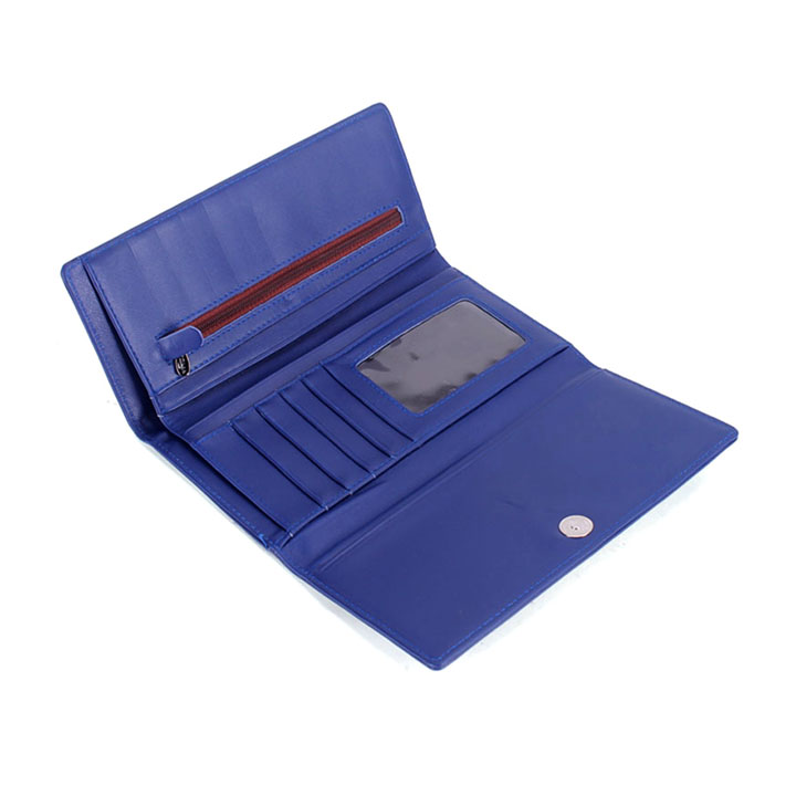 Ví/Bóp nữ da bò Huy Hoàng cao cấp 3 gấp màu xanh dương 3158
