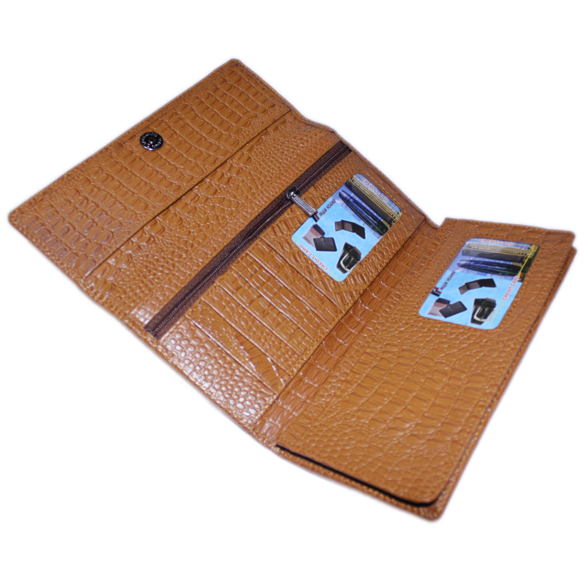 Ví/Bóp nữ da bò Huy Hoàng vân cá sấu lớn 3 gấp màu nâu đỏ 3154