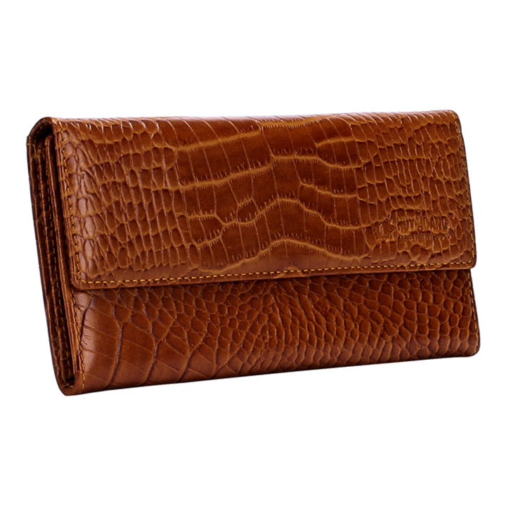 Ví/Bóp nữ da bò Huy Hoàng vân cá sấu lớn 3 gấp màu nâu đỏ 3169