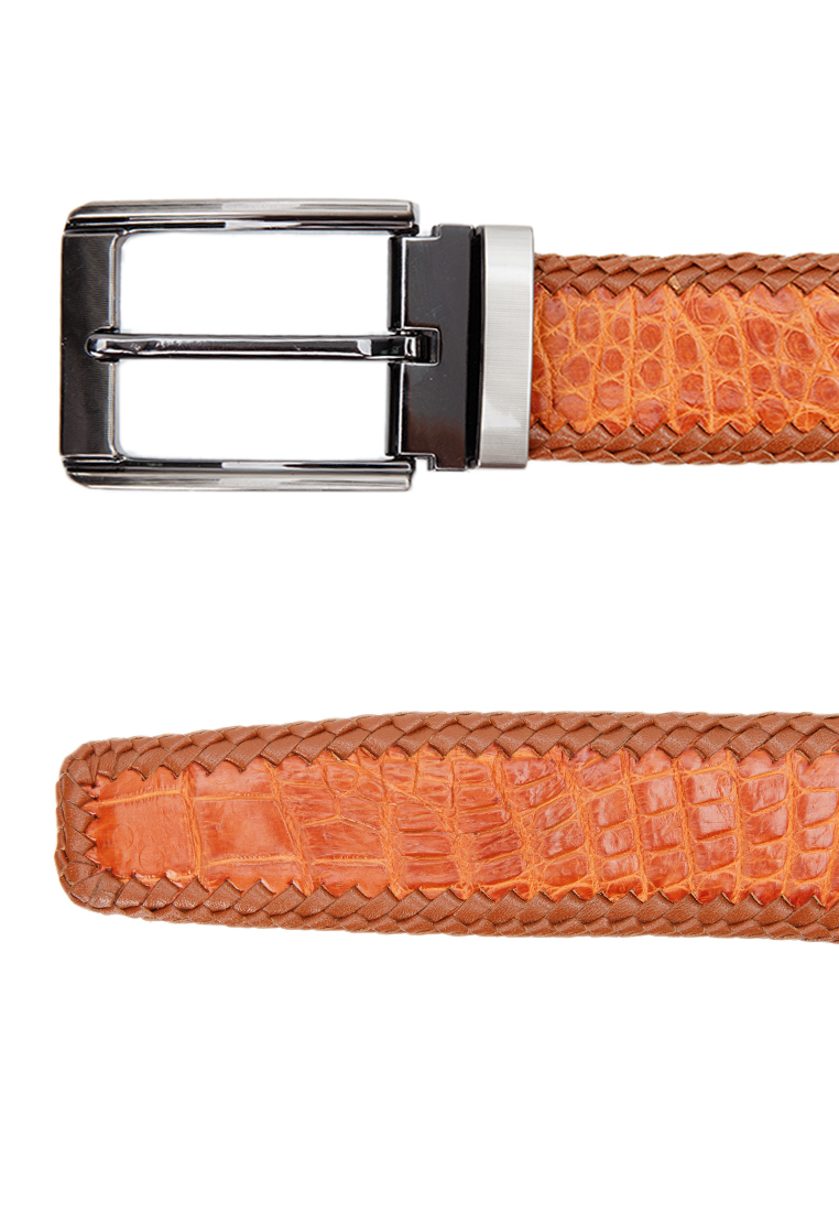 ✨HJ4276-77-78-79 Dây nịt nam da cá sấu Huy Hoàng đan viền đầu kim màu Đen, nâu đất, nâu đỏ, vàng bò
