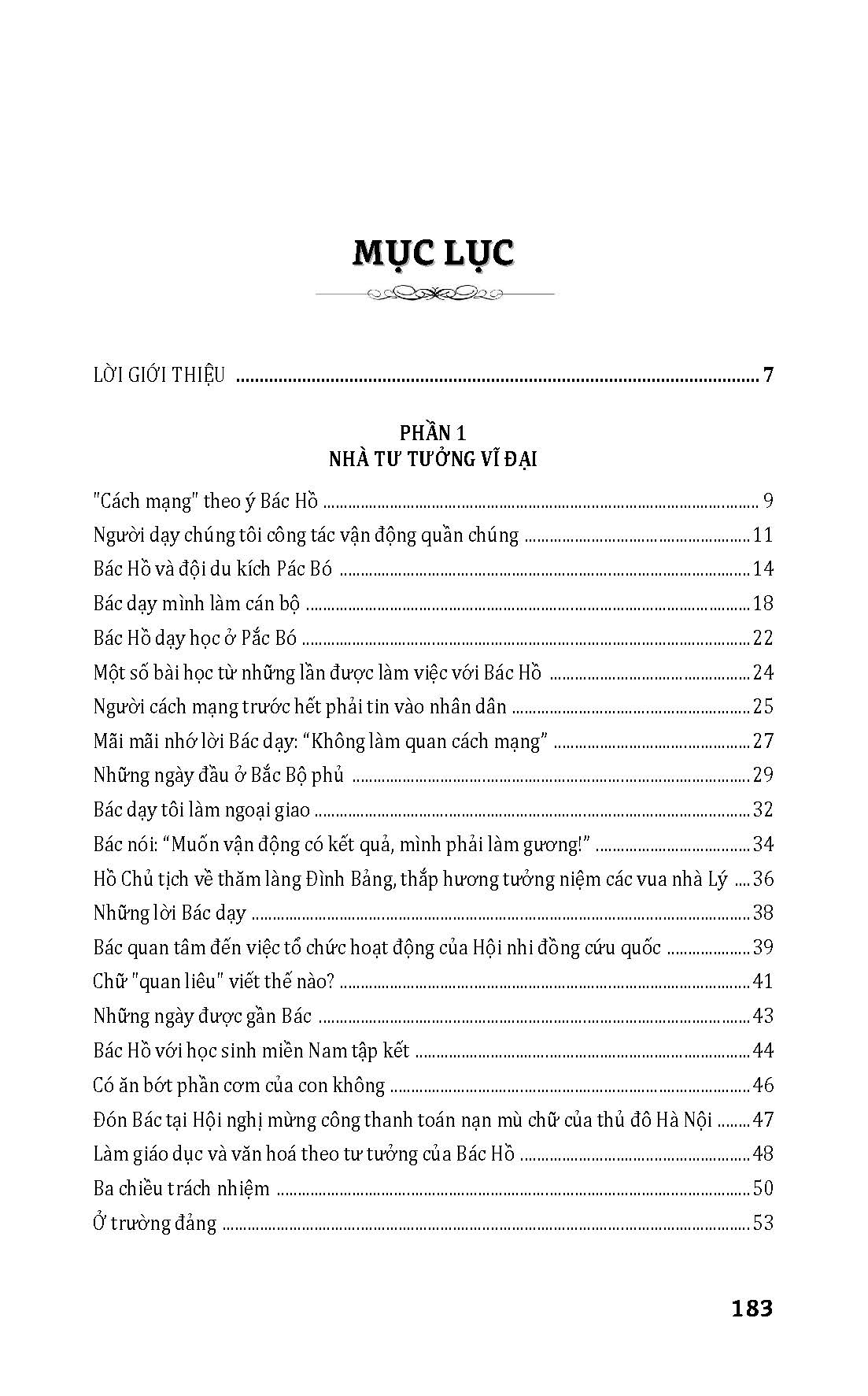 Sách nói về vị lãnh tụ kính yêu của dân tộc dưới góc nhìn gần gũi, thân thương. Mặc dù bám theo trình tự biên niên, sách vẫn cố gắng tổ chức theo các lĩnh